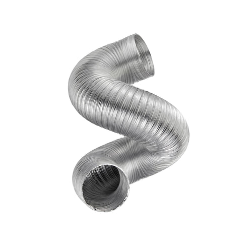 The transition duct is for new and replacement clothes dryer installations. The semi-rigid duct is flexible; the corrugations throughout prevent collapsing and allow for easy duct bending when needed. Aluminum is corrosion-resistant, non-combustible, and flame-resistant, with a maximum operating temperature of 600°F. When installing the duct, you can cut it to length to allow for stretching for maximum airflow.
